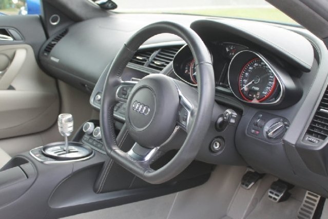 BLUE, Grey Full leather Interior, Four wheel-drive, We have for sale this stunning colour combination Audi R8 V10. The car comes with full Audi service history with no expense spared. This car has covered just 15,000 miles, it has just had 4 brand new tyres fitted and a very recent MOT. There is very little wear on the interior and exterior, the seats are freee from marks and scrapes. A very nice well looked after example. It comes with the follow specification: Sepang Blue with Silver side blades and Silver Leather with Alcantara head lining, B&O sound system, mag ride, Audi parking system plus with front and rear parking aid and rear camera, extended light package, cruise control, Audi navigation with bluetooth function, climate control and heated fine nappa leather electric seats. We offer great rates of finance. Please call the office for more information. Any part exchange welcome. HPI clear