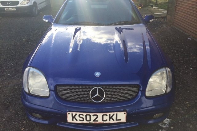 miles from new, finished in best colour combo designo mauritius blue metallic with a ravon black full leather upholstery and brushed aluminium effect interior trim, pas, abs, multi air bags, cruise and traction control, air con, 4 spoke leather sports steering wheel, electric windows, heated electric door mirrors, electric folding hardtop with heated rear window, pop off radio/cd player, remote central locking alarm and immobiliser, genuine mercedes benz alloy wheels with good tyres, fully colour coded, front fogs plus loads more, mot, also comes with mercedes benz leather bookpack containing a stamped service booklet/receipts and mot certs ect, stunning looking car and mercedes benz reliability for onl